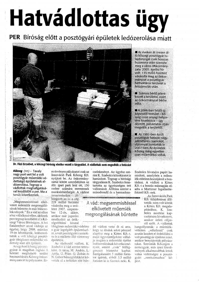 Bírósági per a kőszegi posztógyár engedély nélküli lebontása miatt